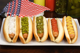 - Hot dogs: Este es un clásico de la comida callejera, en todas las ciudades de EE.UU. podremos ver un carrito de hot dogs. Ya sean a la plancha o a la parrilla si es en un asado, las salchichas se comen dentro de un pan y se acompañan con mostaza y con distintas salsas según el gusto del consumidor. Los acompañamientos clásicos son la salsa de cebolla y el chile (ají) y también el tomate verde.